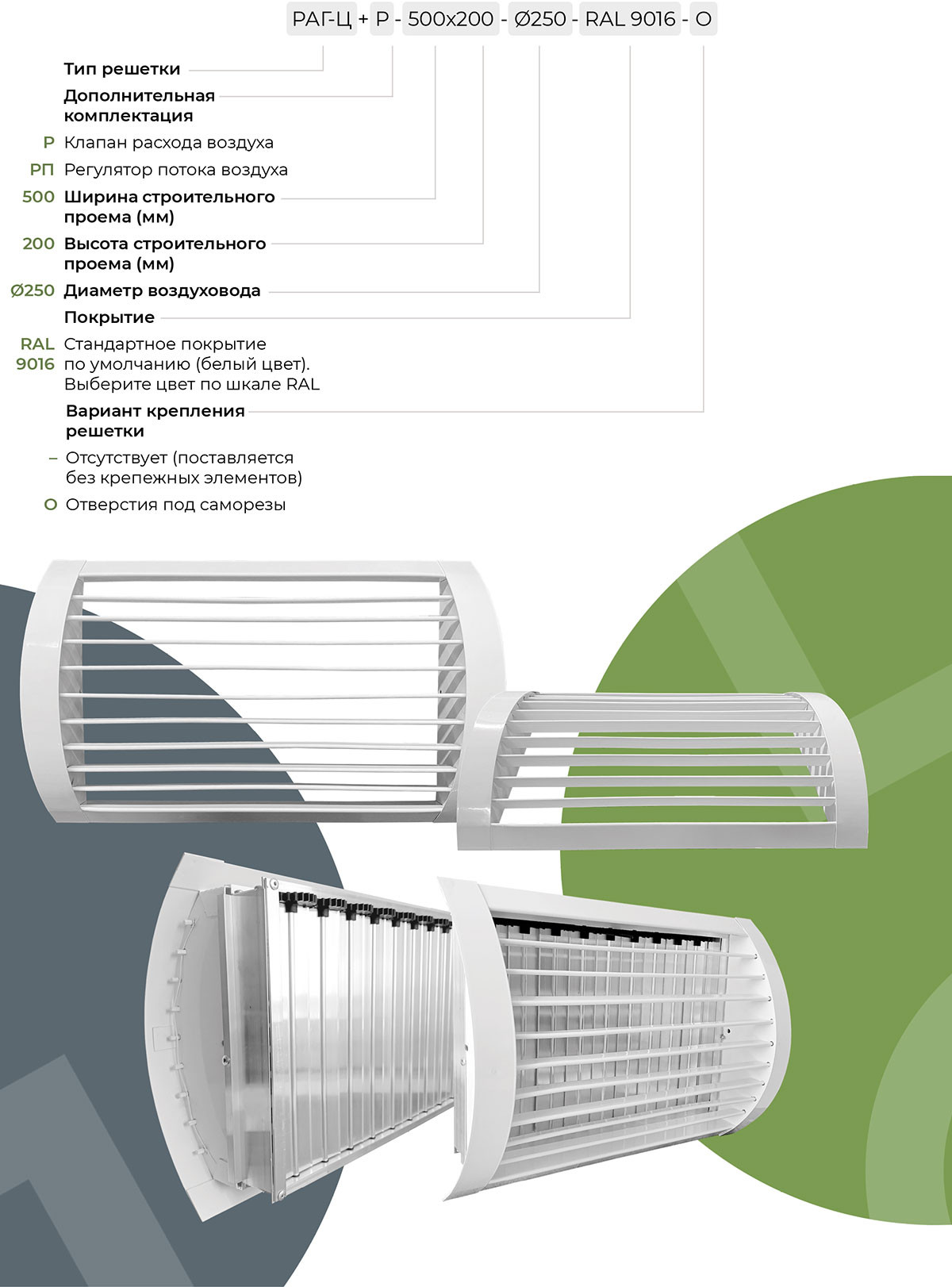 • возможность комплектации клапаном расхода воздуха (КРВ) – РАГ-Ц+Р, или регулятором потока –